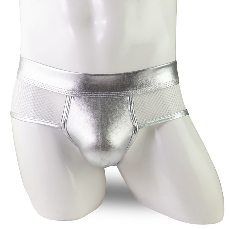 Men's Trendy Patent Leather Patchwork Mesh Shorts Fashion Bikini Low Waist Briefs New Men's Underwear
