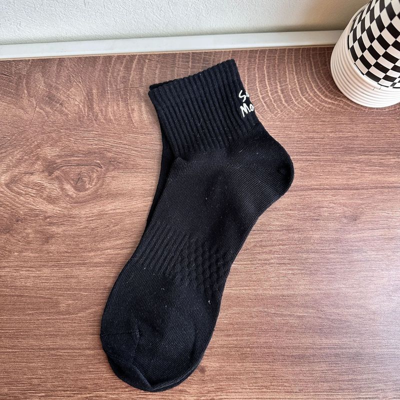 Spring Summer New Men's Socks with Heel Letter Embroidery Mid-Short Socks Men's Solid Color College Style Simple Men's Ankle Socks