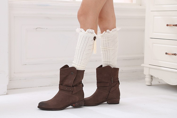 Style Transfer Circle Socks Combed Cotton Lace Trim Mid-Calf Socks Fashion Tassel Women Beautiful Legs Long Socks Hole Socks