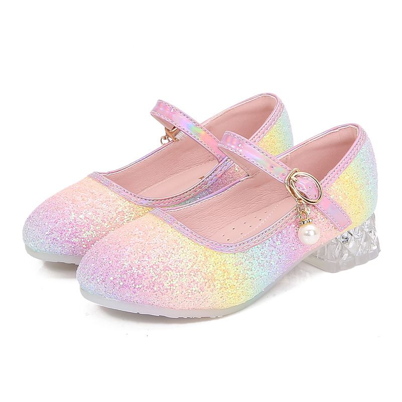 Girls' Princess Shoes Soft Sole Performance Spring Autumn Bowknot Fashion Sweet Cute Non-slip Rainbow Children's High Heels
