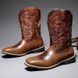 Amekaji Men's High Tube Embroidered Work Boots Men's Western Cowboy Boots Trendy Motorcycle Rider Boots Square Toe Riding Boots
