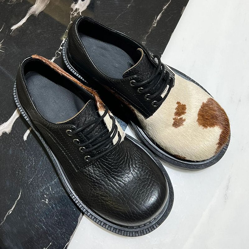 Horsehair Derby Shoes Unisex Milk Color Mandarin Duck Small Leather Shoes Lace-up Chunky Heel Thick Sole Soft Leather Casual Shoes Trendy