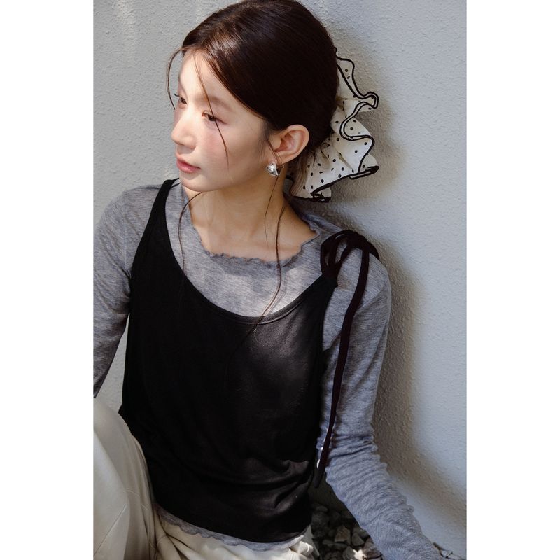 【28th Sunny Day】Geming Korean Style Autumn Camisole + Inner Layer Base T-Shirt Two-Piece Set N515C