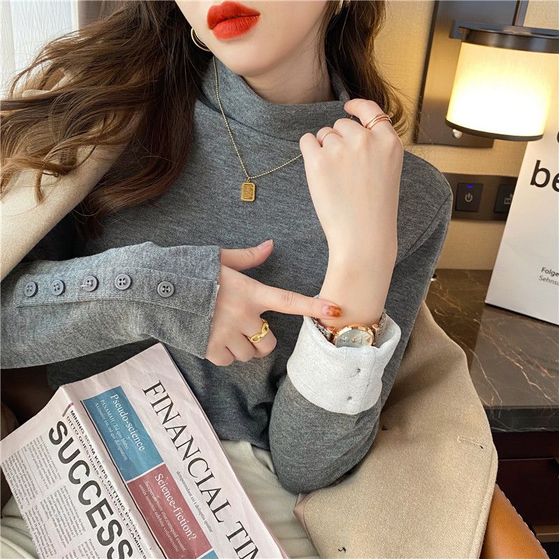 280 g neues deutsches Samt-Basishemd für Damen, Langarm-T-Shirt mit halbhohem Kragen, Innenschicht für Herbst und Winter,