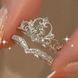 2PCS Fairy Sparkling Crown Rings for Women Teen Crystal Korean Adjustable Silvery Anniversary Gift Party Queen Ring Set Jewelry