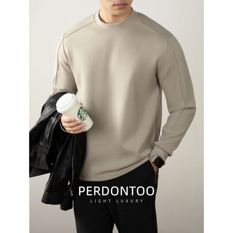 340G Heavy Air Layer Sweater Herren Langarm-Unterhemd Herbst und Winter Halbrollkragen-T-Shirt
