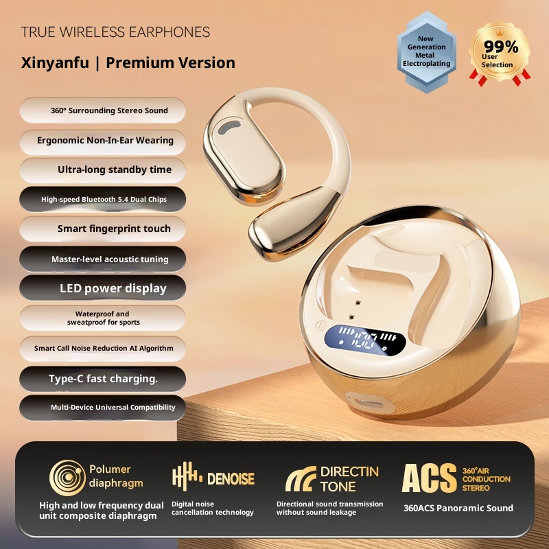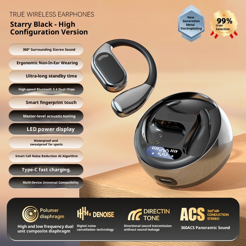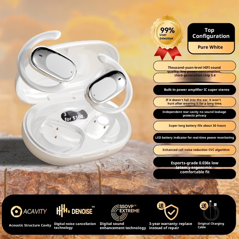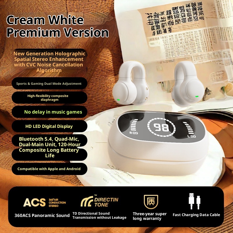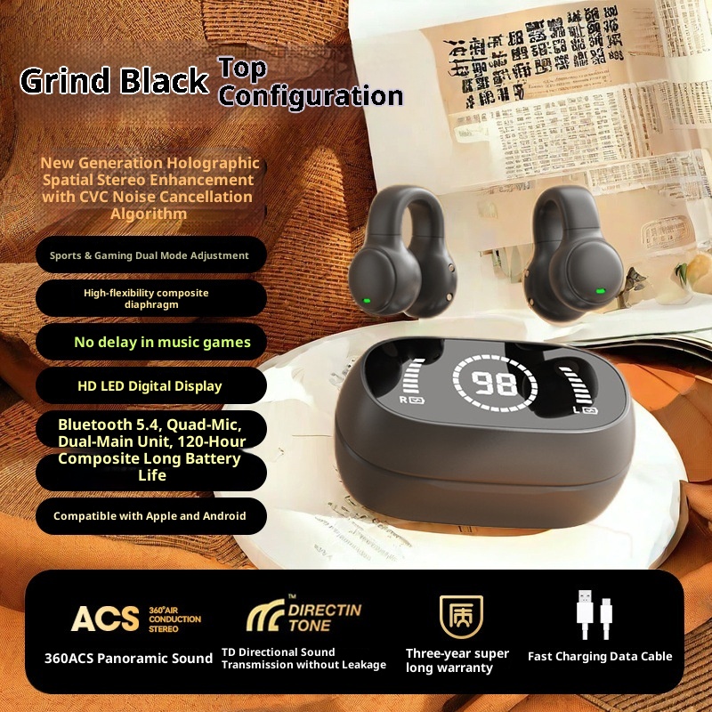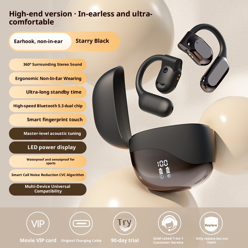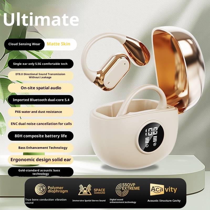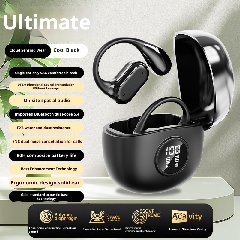 3c Cross-Border Hot M76 Hook Open Ear Non-In-Ear OWS Bone Conduction Wireless Bluetooth Earphone Color Display