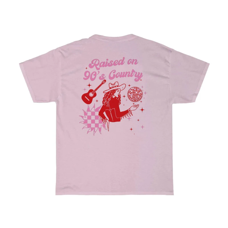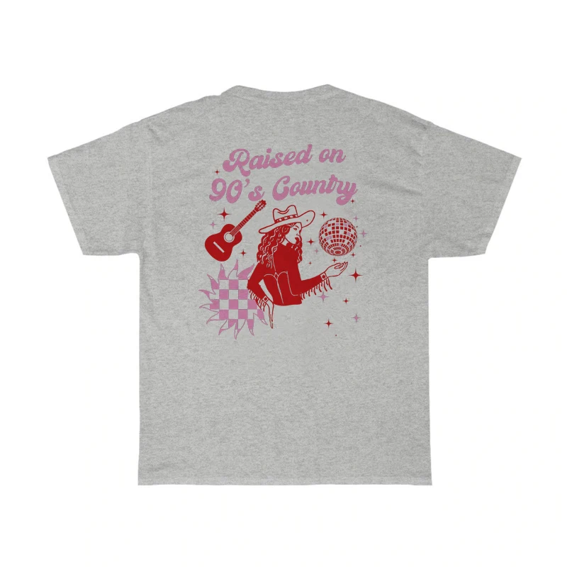 5015Raised On 90s Country Music Back T-Shirt Damen Retro Cute Disco Ball Graphic Tee Shirt Cowgirl Vintage Western613