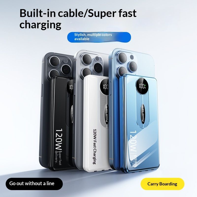 50704555550<=3 Cross-borer Neues Modell Kundenspezifische große Kapazität Teilen Eingebautes Kabel Superschnelles Laden 66W Powerbank 20k Tatsächlich