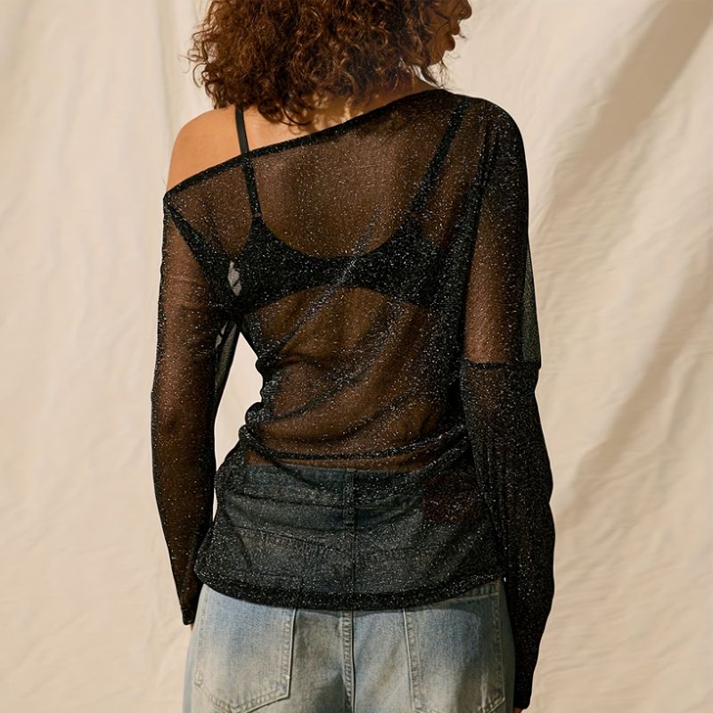 60244 Damen T-Shirt Nazada 2025 Herbst Winter Leichtes Off-Shoulder Vielseitiges Sheer Sexy Langarm Top