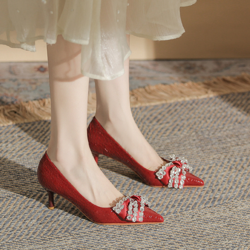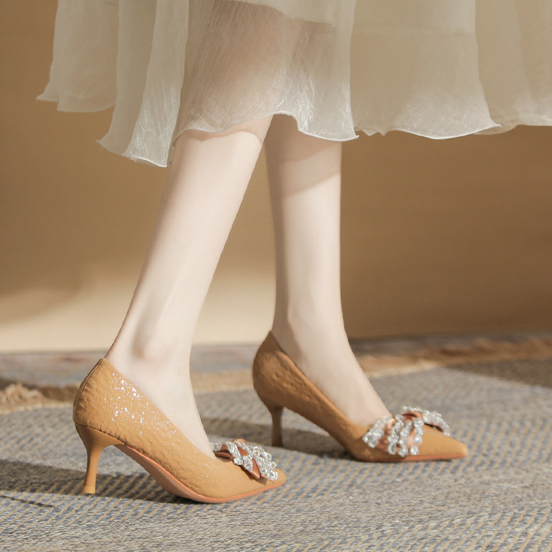 6310 Nischendesign spitze hochhackige Schuhe 2024 Frühjahr neue Western-Stil Wasser Diamant Schmetterling Knoten feine Folgeschuhe