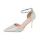 6692A Braut-Hochzeitsschuhe mit spitzer Zehenpartie, Kristall- und Paillettenbesatz, Stiletto-Absatz, Knöchelriemen, hohle Details