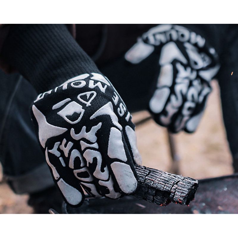 800 Grad isolierte Handschuhe für den Außenbereich, Silikon-Grillofen, dicke hitzebeständige Handschuhe