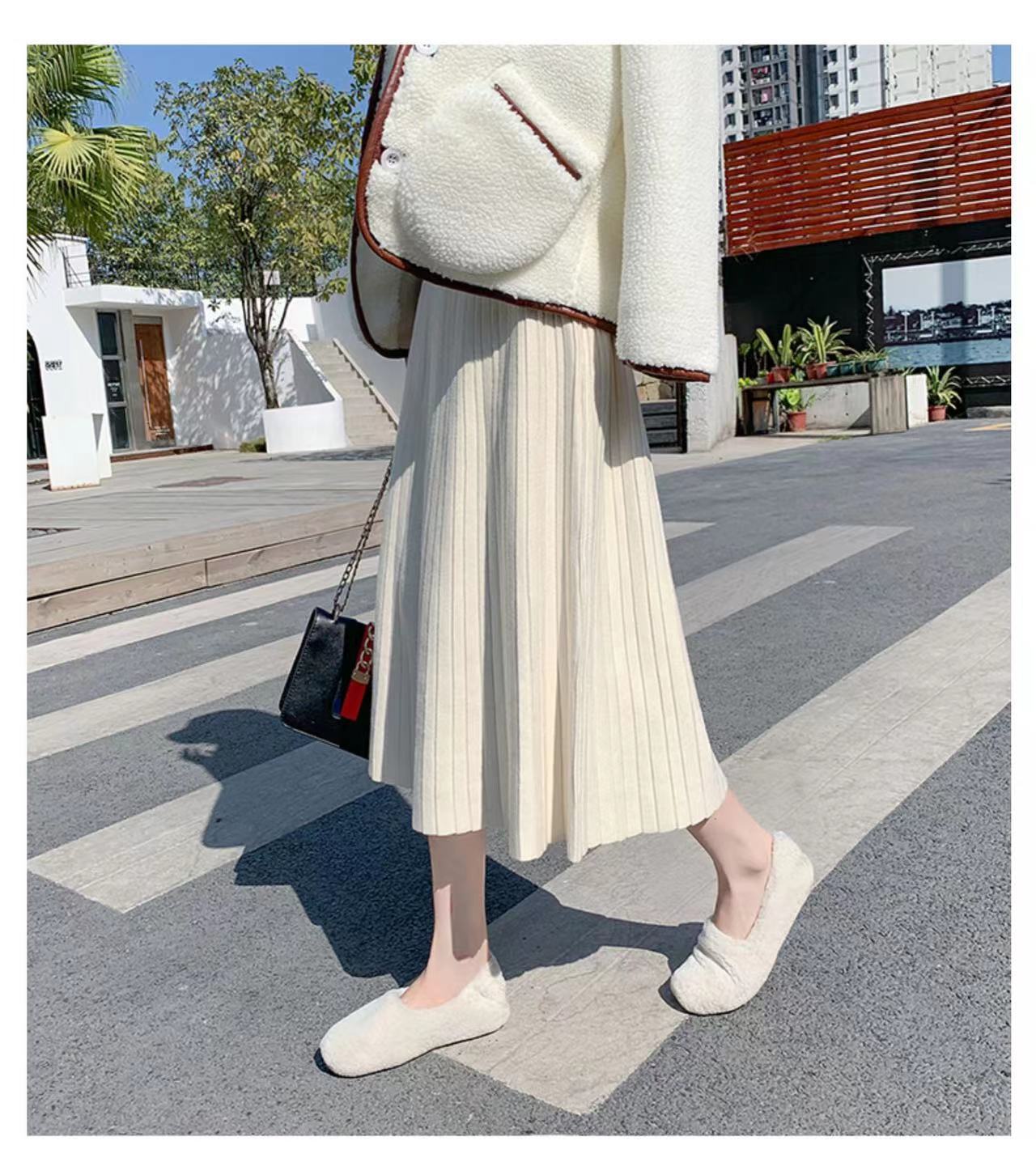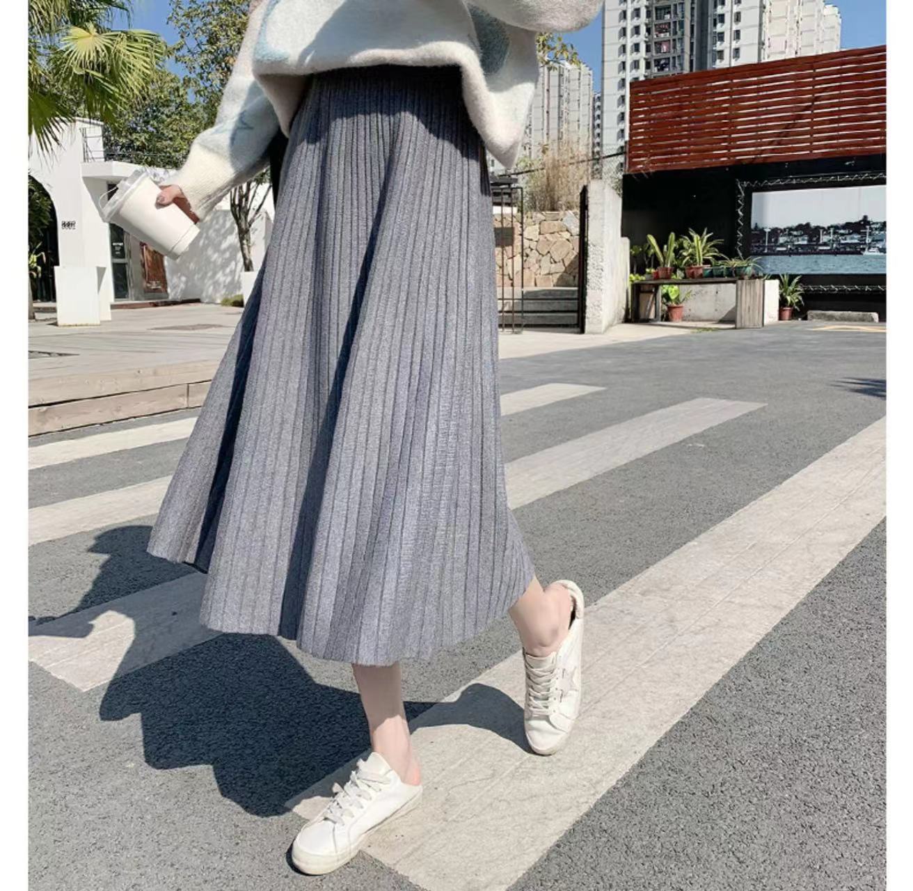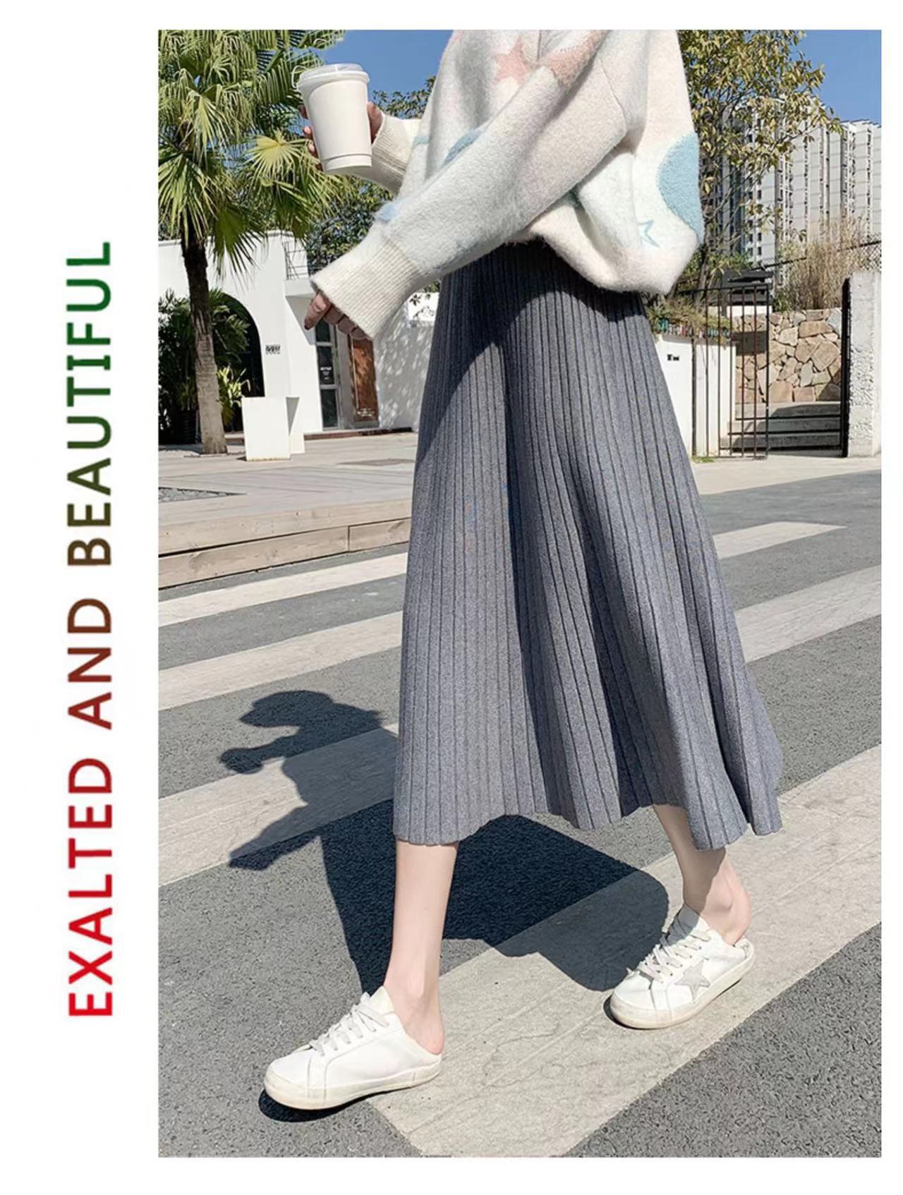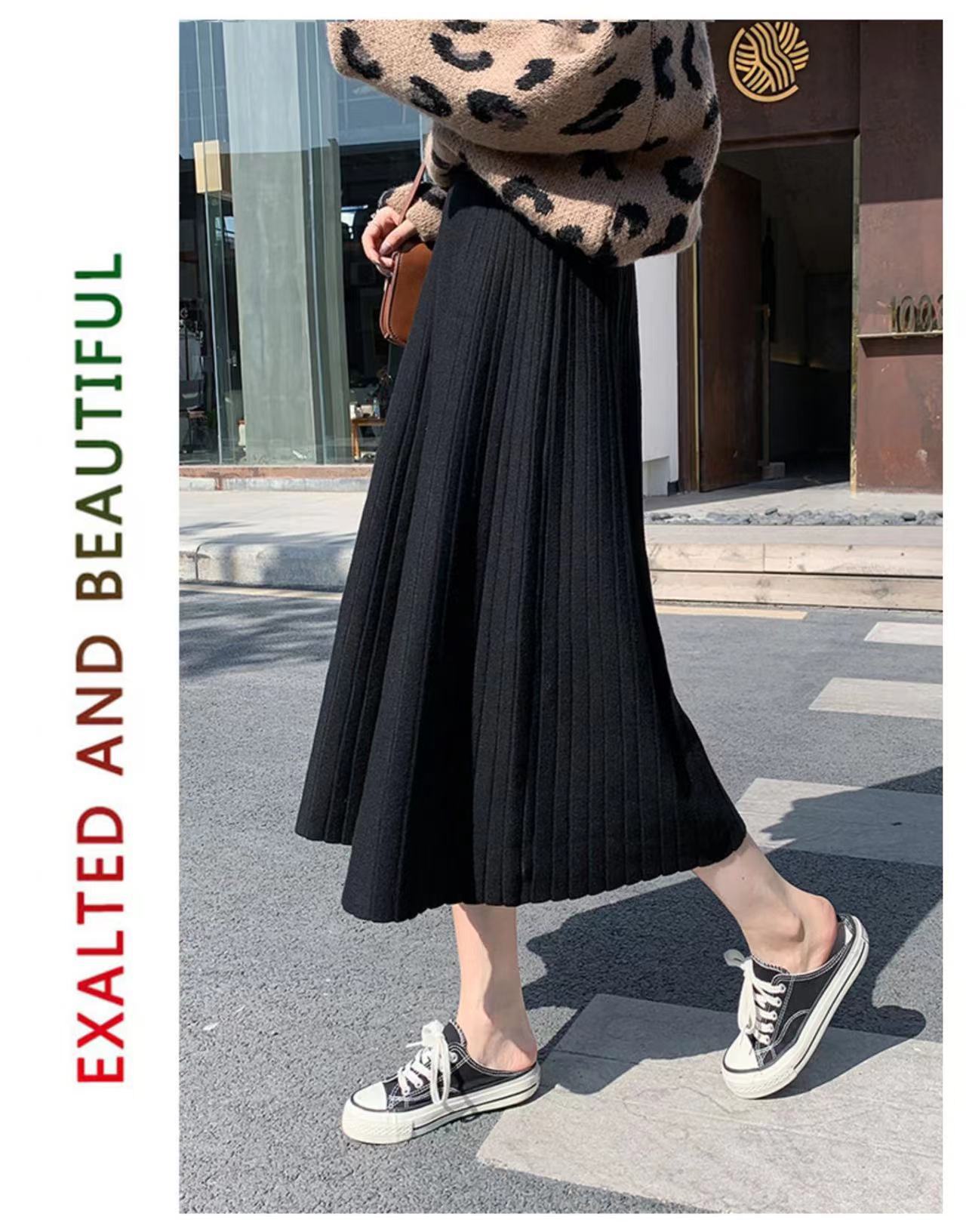 A-Linien-Rock mit hoher Taille – Ausgestellter Midi-Faltenrock (Schwarz/Grau/Beige/Khaki, Einheitsgröße)