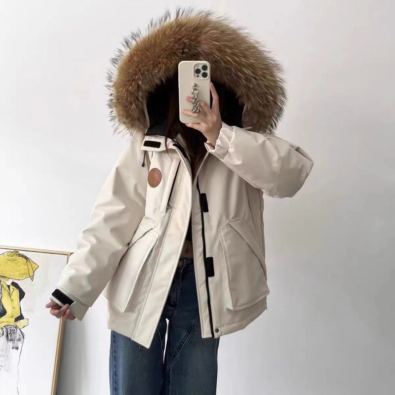 ActiveGo Parka mit Pelzkragen, weiße Daunenjacke, Unisex, heißer Verkauf, dicker Wintermantel