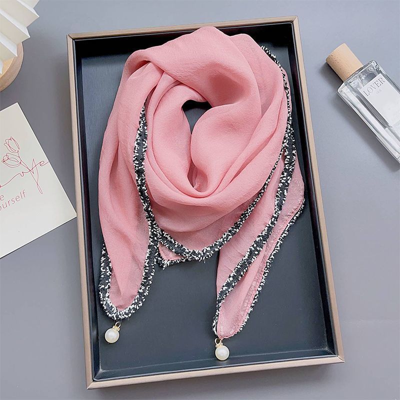 Fortschrittlicher Damen-Schal aus einfarbigem Tencel mit französischem Anhänger, kleinem duftendem Magnetknopf, 70 Quadraten, dünner Gaze