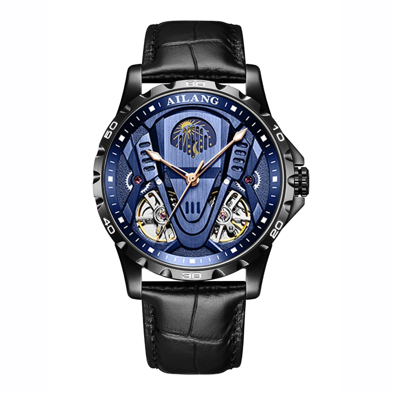 AILANG Doppel-Tourbillon-Mondphasenuhr für Herren, automatische mechanische Armbanduhr, Leder, Herrenuhr, wasserdicht, Relogio Masculino