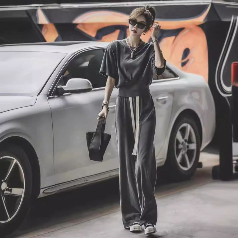 Audday Salt Style Sportanzug für Damen Sommer 2024 Neue lässige Mode Design Sense Nische Kurzarm Weite Beinhose Zweiteilig