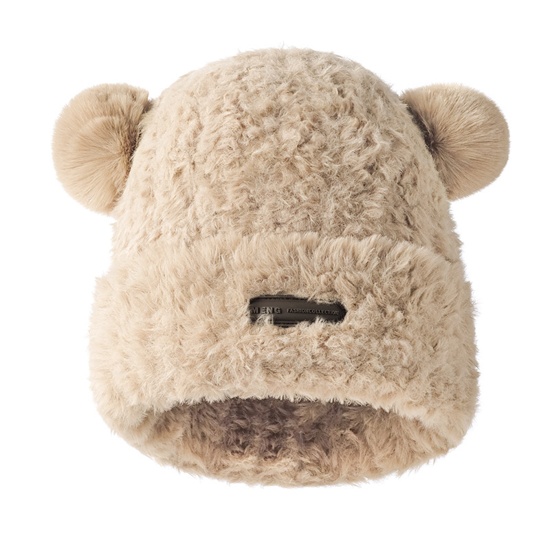 Herbst- und Wintermützen für Damen, süße Fleece-Wintermütze, verdickter warmer Gesichtshut, kleine kältebeständige Plüsch-Strickmütze aus Wolle