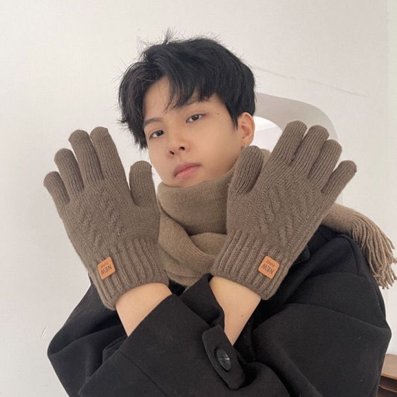 Autumn Winter Thickened Fleece Knitted Warm Touchscreen Gloves for Couples Men and Women Outdoor Driving Cycling Cold Protection