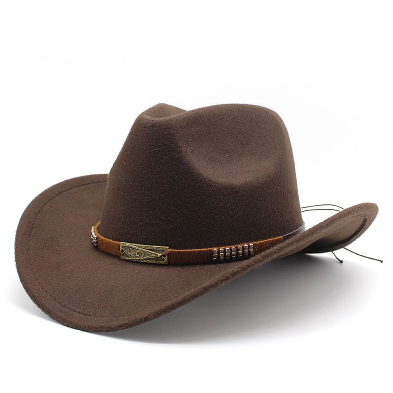 Autumn and winter woolen jazz hats with metal belts, cowboy top hats with rolled edges, Western cowboy top hats for men and women