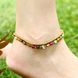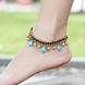 Bohemian Ethnic Style Turquoise Teardrop Copper Bell Pendant Anklet Freshwater Pearl Double Layer Beaded Women's Foot Jewelry