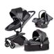 Kinderwagen mit 360-Grad-Drehung, faltbar, stoßdämpfend, Leder, zweifacher Hochblick, kann sitzen und liegen