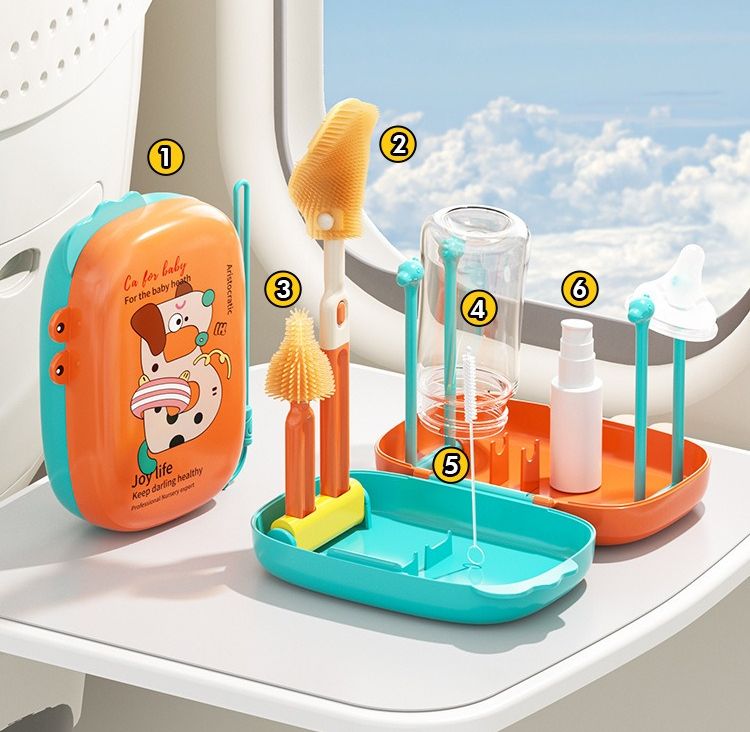Babyflaschenbürste, Reinigungsset, tragbarer Silikonschnuller, Strohhalm-Reinigungsbürste, eingebautes Abflussregal, Aufbewahrungsbox Großhandel
