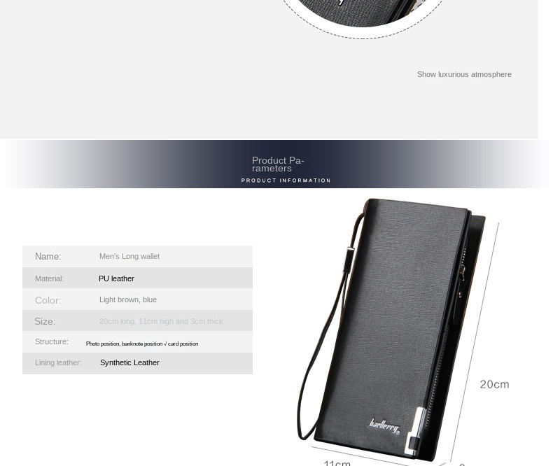 Brand: baellerryStyle: European and American stylePopular elements: skin textureApplicable gender: maleMaterial: PU leatherLining texture: synthetic leatherNumber of wallet folds: 3Opening method: zipper buckleThe internal structure of the small bag: secret compartment, bill clip, photo position, change position, zipper compartment, certificate position, card positionBag shapes: square vertical sectionpattern: plainHardness: hardProcessing methods: soft surfaceLength: mid-lengthApplicable gift-giving occasions: birthdays, housewarming, advertising promotions, employee benefits, anniversary celebrations, awards commemoration💖Welcome to my store💖 [My store has a wide range of bags for men and women. The quality of the bag is very good and practical, and the style keeps up with the trend of the times. There is always one suitable for you, please rest assured to buy! 】1️⃣All products are shipped from China【In stock】 2️⃣Orders will be shipped within 1-2 days and received within 8-20 days~depending on the scanning speed of the transit warehouse and the customs time limit. 3️⃣If you need to buy any products in China, you can contact me. There are many discounts~ 4️⃣If you are satisfied with the product, please give our store a 5-star praise and pay attention to our store. Thank you for your support and trust. 5️⃣Your encouragement is my motivation. Thanks. Small sellers, please support! Thank you! 💎Messenger bag/shoulder bag/backpack/underarm bag/tote bag/small square bag/school bag/clutch bag/wallet/saddle bag/French bag/briefcase/sports bag/gym bag/travel bag/shopping bag/ Cosmetic bag/toilet bag/ - - - - - - -