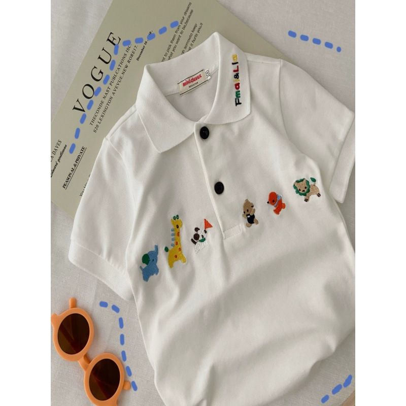 Cotton Polo collar T-shirt for boys and girls, summer new short sleeved, stylish, versatile, cute cartoon top, trendy