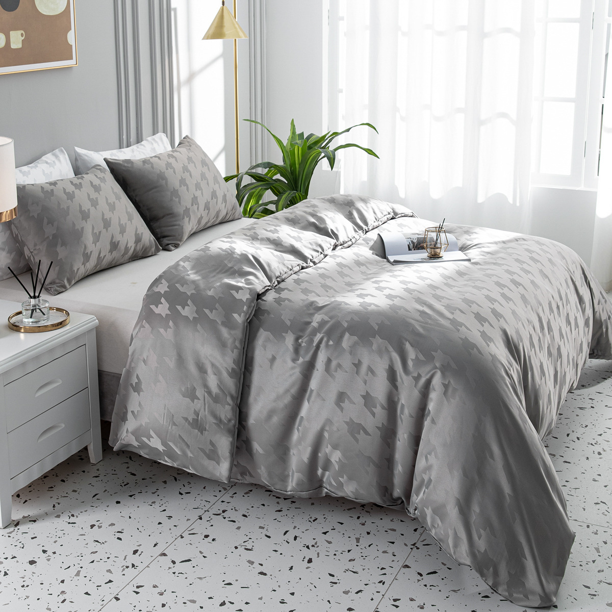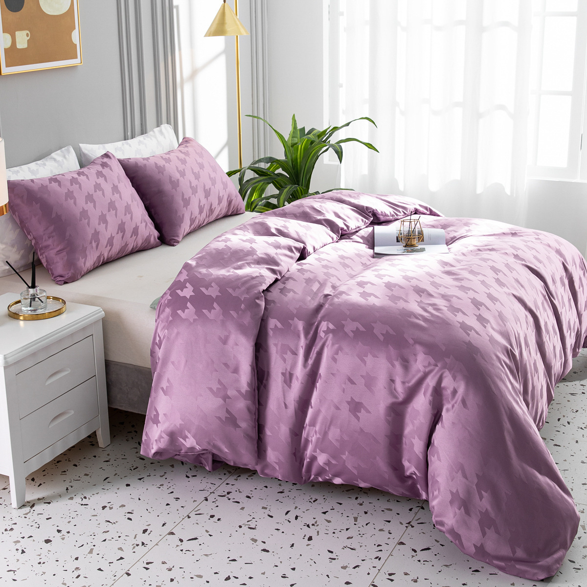 Bettwäsche, leichtes, luxuriöses dreiteiliges Set, schlichtes, solides, mattes, winziges Jacquard-Kissenbezug-Set
