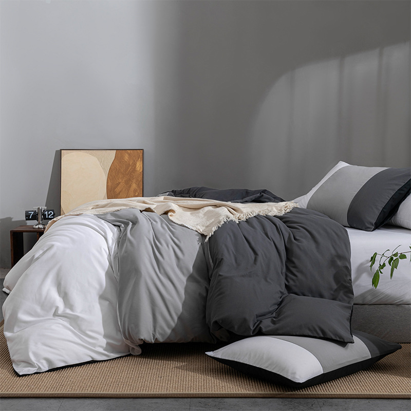 Bettwäsche, einfaches, einfarbiges, mattes Spleißen, dreiteiliges Bettbezug-Set