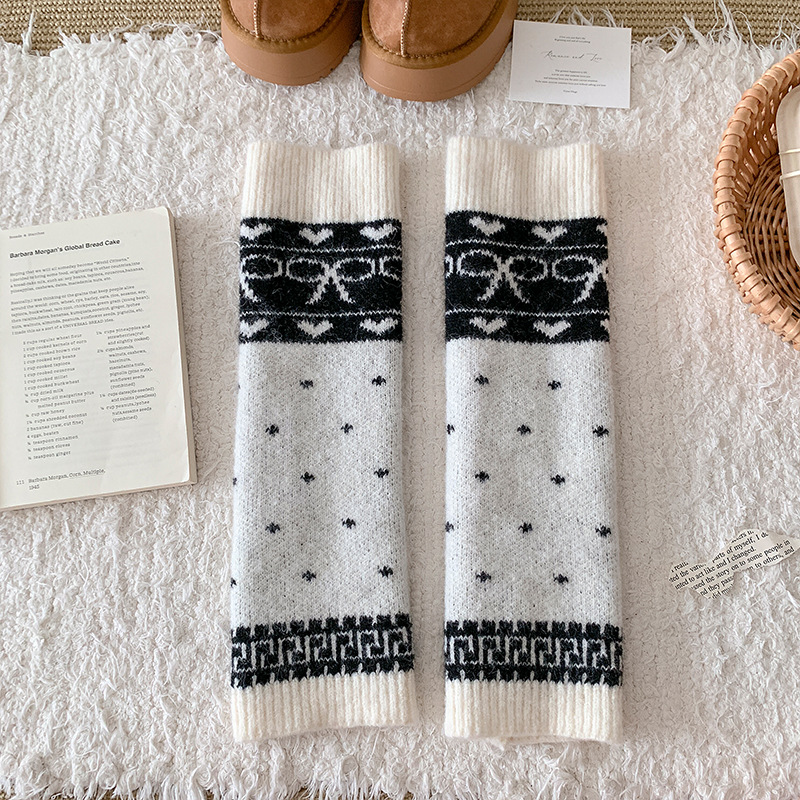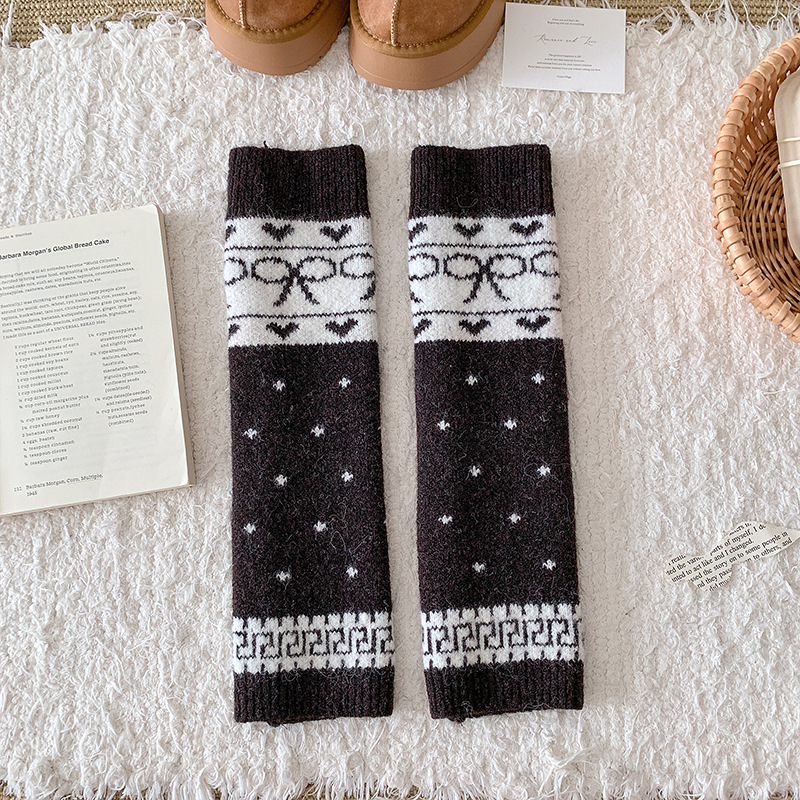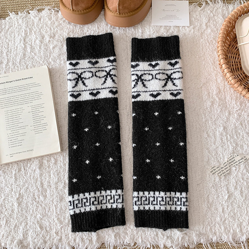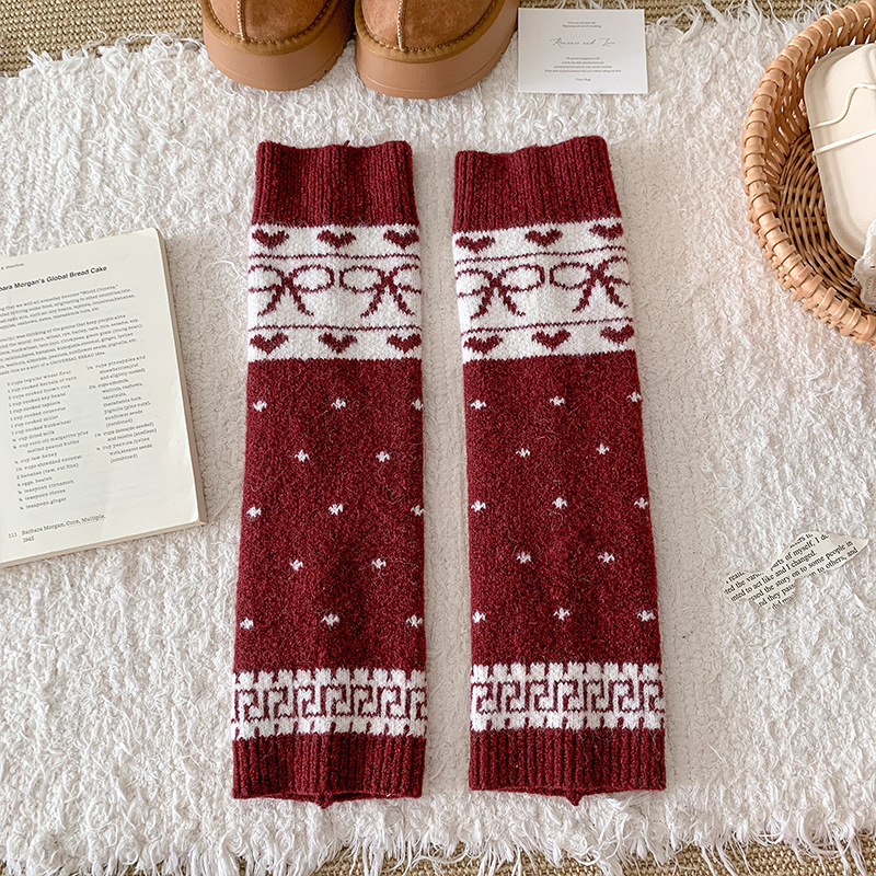 Beinstulpen Bootshang Baumwollsocken für Damen Herbst und Winter Wolle Warm Dick Schleife Retro Maillard Heavy Industry Fair Isle Strümpfe