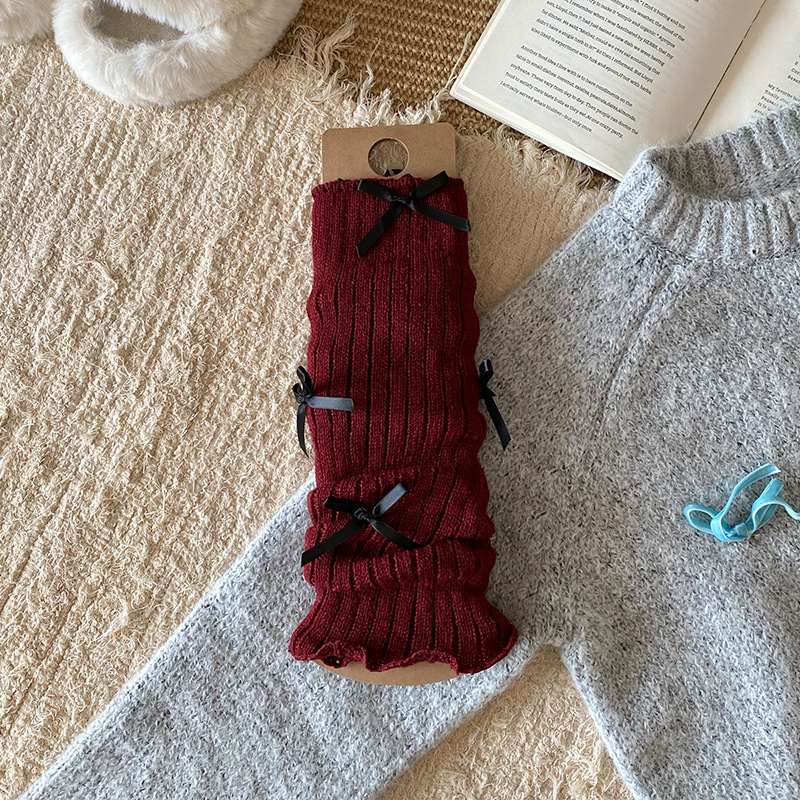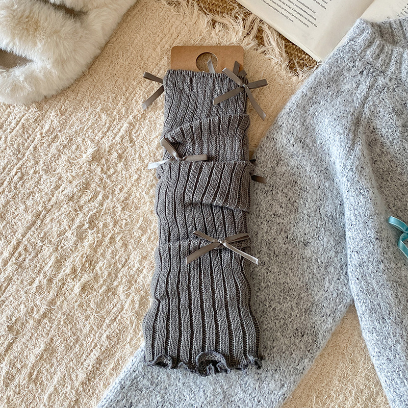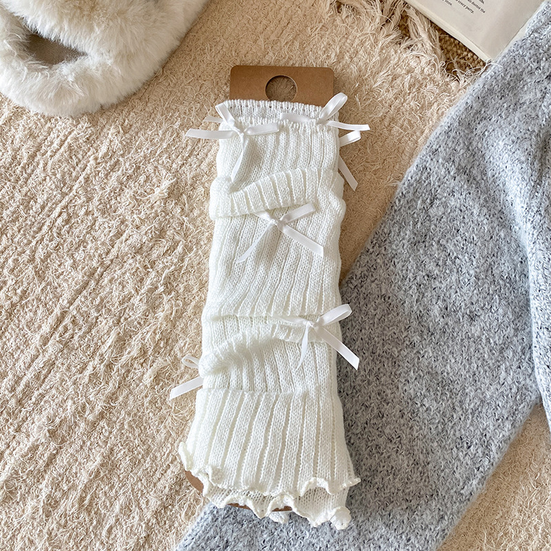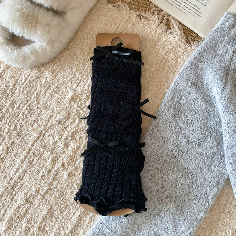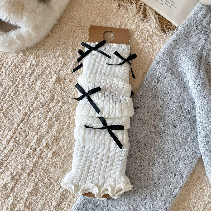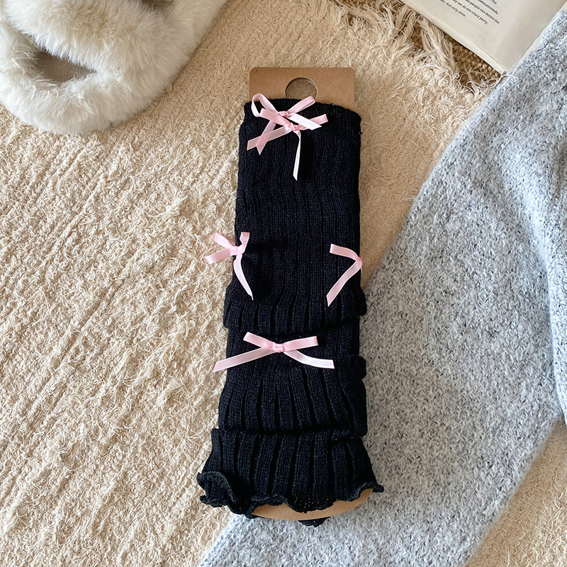 Tired of boring socks that disappear under your boots? These bow-adorned sock cuffs add instant charm to any look – whether you’re channeling Lolita romance or casual balletcore vibes. The chunky ribbed knit and delicate bows create a playful contrast, while the stackable design lets you customize the height for boots or ankle shoes.