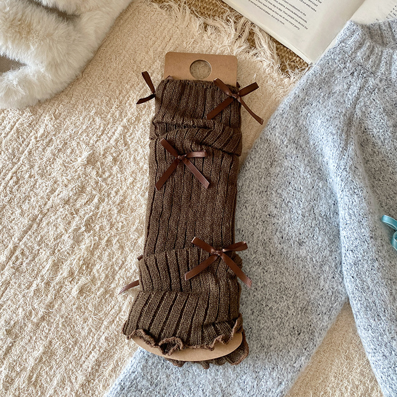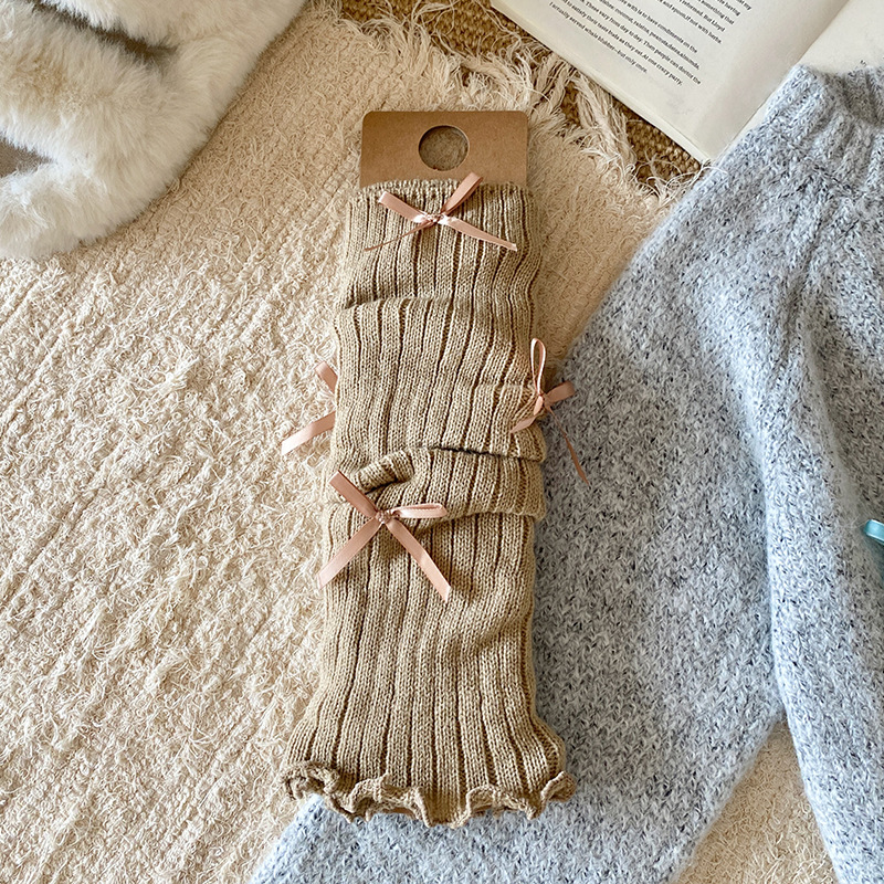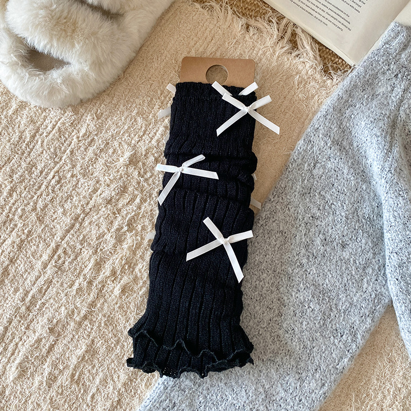 Beinstulpen, Stiefel, modische Baumwollsocken, Damensocken mit Schleife, gestapelte Socken im Lolita-Ballett-Stil, lange Röhrensocken für Mädchen, gestrickte Herbst- und Wintersocken