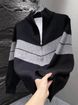​​Übergroße Strickjacke für Herren – Pullover aus Wollmischung mit hohem Kragen und Farbblockierung (Grau/Schwarz, EU-Größe M-3XL)​​_voghion.com