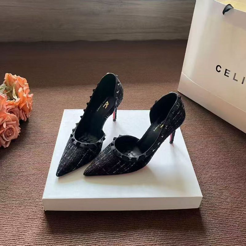 Besetzte High Heels Sexy Lady 2025 Neue schwarze elegante spitze Zehenpartie Dünne Ferse Side Cut Prominente Sandalen für Frauen