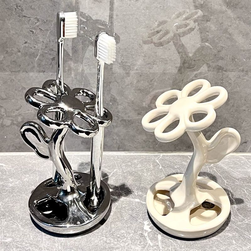 Blumenförmiger Zahnbürstenständer, Badezimmer-Waschtisch, Make-up-Pinselhalter, Sockel, Aufbewahrungsregal, Keramik