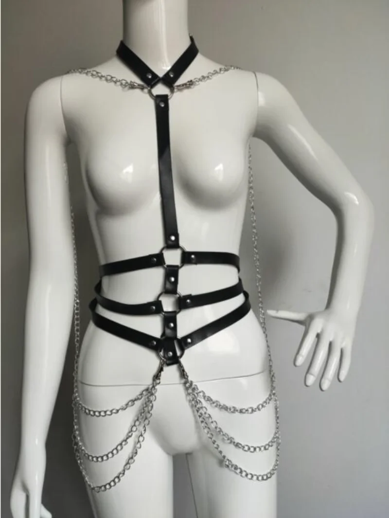 PU Leather Body Bondage Harness Clothes Adjustable Punk Sexy Lingerie Erotic Accessories Adult Game Sex Toys for Couples Women
