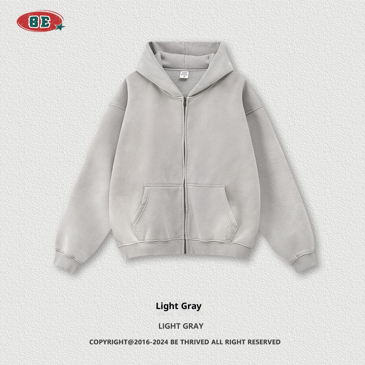 Product Source Category:In Stock,Brand:BE THRIVED,Item Number:W2427,Year/Season of Release:2025 Winter Season,Is it a set or not?:No,Style:American Vintage,Bargain Category:Youth Fashion 18-24 Years Old,Design 1:Pullover,Collar Style:Stand Collar,Sleeve Length:Long Sleeve,Is it hooded or not?:Hooded,Front placket:Zipper,Thickness:Fleece-lined,Error margin:1-3,Suitable for the season:Winter,Is it in stock?:yes,Inventory Type:Complete order,Main fabric composition:Polyester Fiber Dacron,Content of the main fabric components:38%,Fabric Name:Cotton,Applicable Scenarios:Casual,Pattern:Solid Color,Design details:Zipper Decoration,Design:Loose Fit,Craftsmanship:Spray Horse Hair,Clothing Pocket Styles:Flap Pocket Pants,Color:Blue, light gray, black, dark gray, Oversize,Size:US version size runs large; domestic recommendation: order one size smaller for a better fit (S, M, L, XL),Suitable for everyone:Teenagers,Main downstream platforms:, , , , Independent Station, , Others,Main sales regions:Africa, Europe, South America, Southeast Asia, North America, Northeast Asia, Middle East, Others,We have authorized private labels available:yes,Is it exclusively for cross-border export supply?:yes,Sleeve Style:Drop Shoulder Sleeves,Original Design Source:yes,Is there a quality inspection report?:No,Gram weight:360g,Suitable age group:adult,Applicable Gender:Male,Lining Material Composition Content:100,Product Category:Fleece Sweatshirt