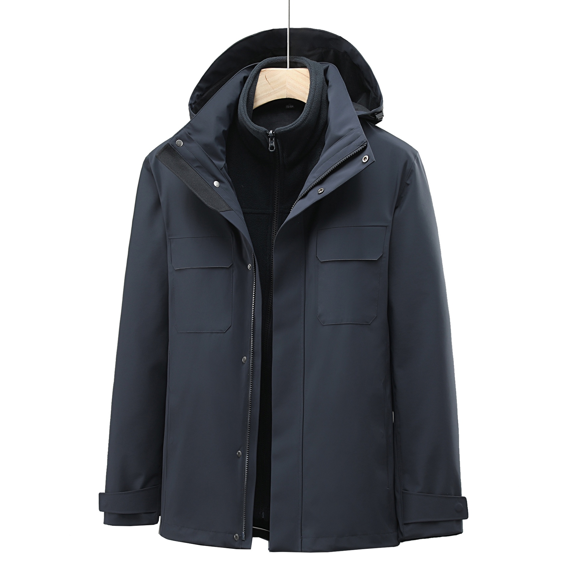 Product Source Category:In Stock,Is it in stock?:yes,Inventory Type:Complete order,Fastest shipping time:1-3 days,Product Category:Softshell Jacket,Functionality:Breathable, waterproof, UV protection, thermal insulation, wear-resistant, windproof, anti-static, moisture-wicking, stain-resistant,Fabric:Nylon,Suitable for the season:Winter, Spring, Autumn,Pattern:Solid Color,Brand:Dixiang Sports Outdoor,Is it for export?:No,Suitable for Sports:Rock climbing, skiing, camping, fishing, outdoor hiking, traveling, outings, ice sports,Applicable Gender:Male,Error margin:1-3cm.,Style number:J22888,Origin:Zhejiang,Design:Cardigan,Lining Material:Polyester,Quality level:Premium Quality,Suitable age group:Adult,Is it hooded or not?:Hooded,Combination Form:Two-piece set,Is it detachable?:Removable,With or without liner:With Inner Liner,Fabric Composition:Nylon,Does it have a fur collar?:No Fur Collar,Waterproof Rating:5000mm,Item Number:J22888,Color:J22888 Black, J22888 Dark Navy, J22888 Khaki,Size:XS, S, M, L, XL, XXL, XXXL, 4XL,Is it exclusively for cross-border export supply?:No,Outdoor Fabric:70d nylon four-way elastic,What type of liner is it?:Fleece lining,Material:Nylon,Waterproof Breathability Index:5001mm inclusive - 10000mm inclusive,Applicable objects:Male,Clothing Craftsmanship:Fully Sealed Edges,Appropriate Season:Winter,Clothing Designs:Regular,Length of clothing:Regular,Patent Type:None