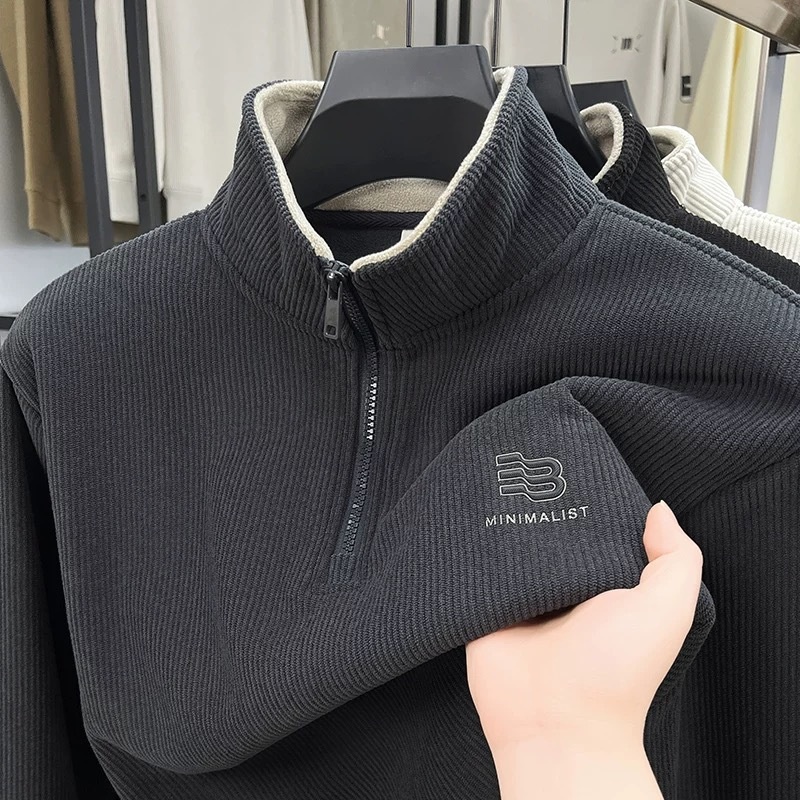 boy Boy Boy 2025 Neues Herren-Langarmshirt mit halbem Reißverschluss, sandfarbenem Kragen und Sweashir-Oberteil, warm gefüttert, für Frühling und Herbst