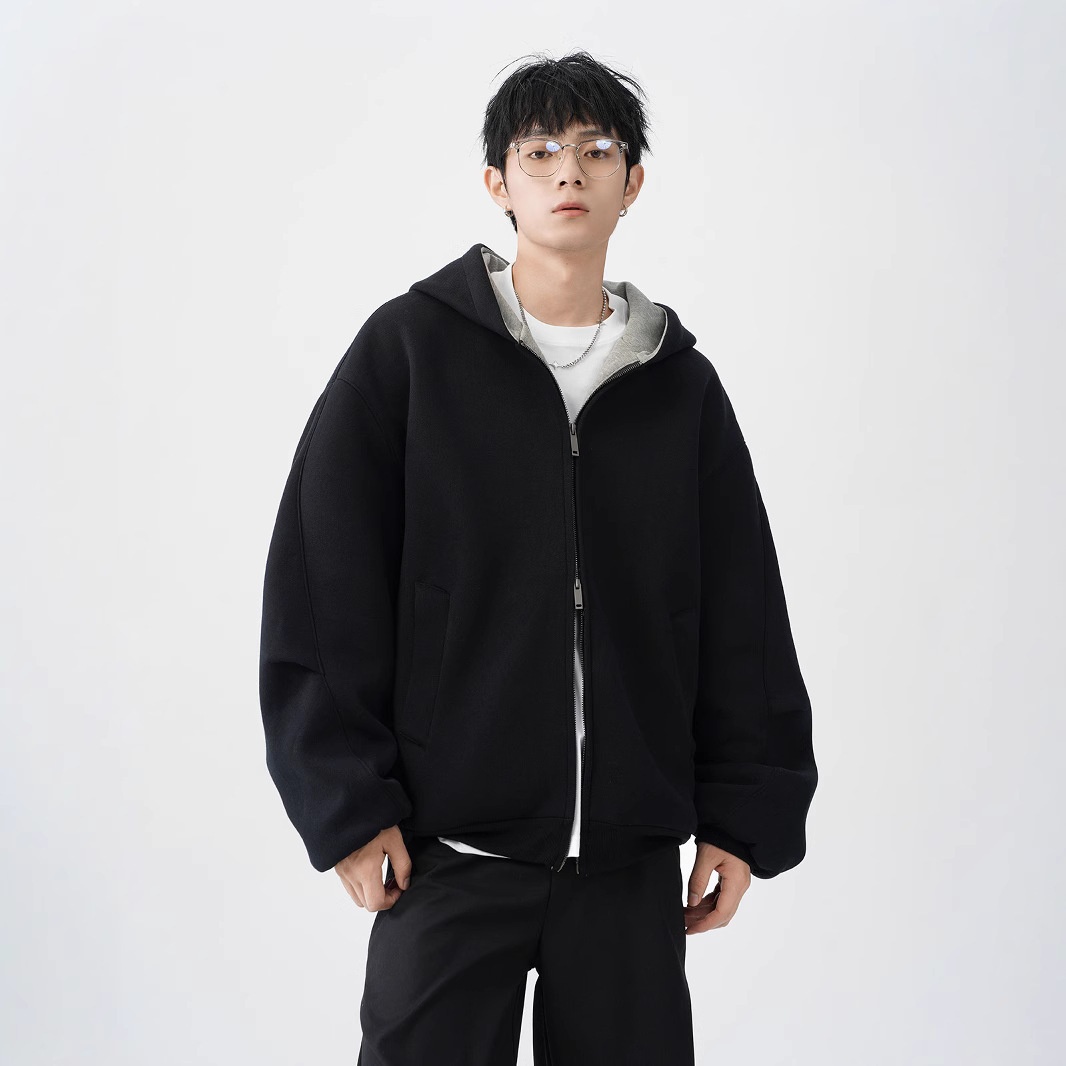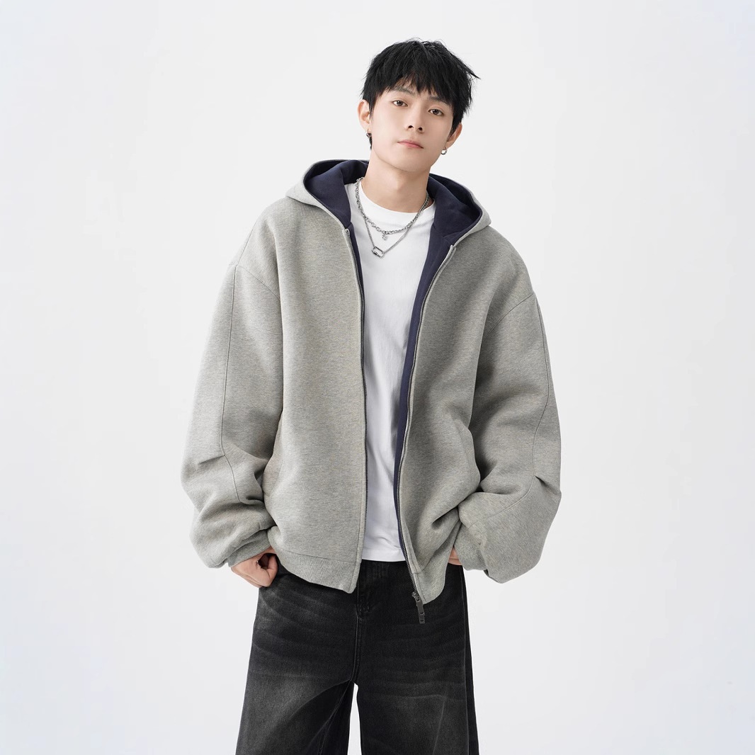 Product Source Category:In Stock,Item Number:Hemei F33,Year/Season of Release:Spring 2025,Is it a set or not?:No,Style:Korean Style,Bargain Category:Youth Fashion 18-24 Years Old,Design 1:Cardigan,With or without liner:No liner,Collar Style:Collarless,Neckline shape:V-neckline,Sleeve Length:Long Sleeve,Is it hooded or not?:Hooded,Front placket:Zipper,Thickness:Thickened,Error margin:1-3cm.,Suitable for the season:Spring and Autumn Season,Is it in stock?:yes,Inventory Type:Complete order,Main fabric composition:Cotton,Content of the main fabric components:81% included - 90% included,Fabric Name:Cotton,Applicable Scenarios:Everyday,Pattern:Solid Color,Design details:Color Blocking,Design:Loose Fit,Craftsmanship:Non-iron treatment,Clothing Pocket Styles:Side Seam Pocket,Color:Gray, black,Size:M,L,XL,2XL,3XL,Suitable for everyone:Teenagers,Main downstream platforms:, , , , Independent Station, ,Main sales regions:Africa, Europe, South America, Southeast Asia, North America, Northeast Asia, Middle East,We have authorized private labels available:No,Is it exclusively for cross-border export supply?:yes,Sleeve Style:Regular,Pocket Design:Side Seam Pocket,Original Design Source:No,Is there a quality inspection report?:No,Quality Inspection Report Number:1,Gram weight:350g included - 400g excluded,Suitable age group:adult,Applicable Gender:Male,Product Category:Fleece Sweatshirt