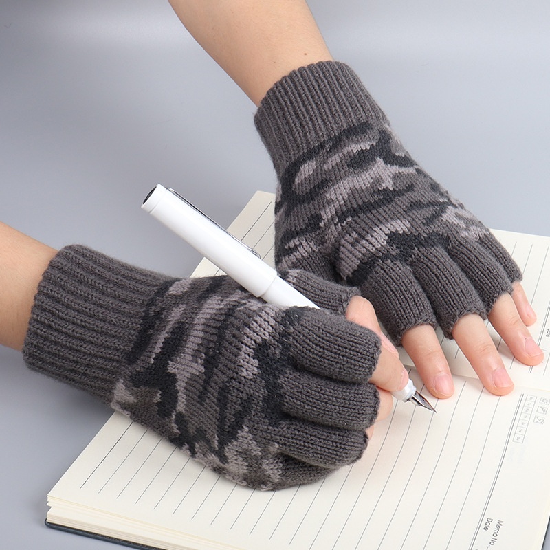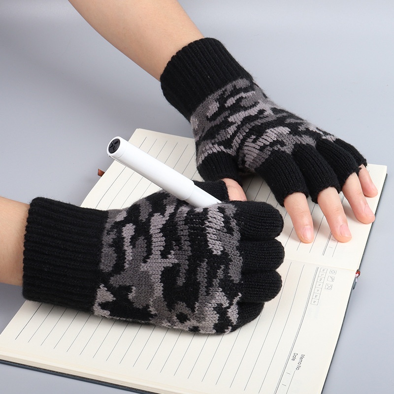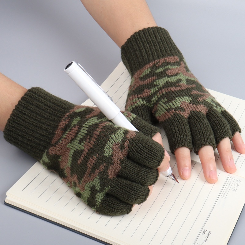 Neue Camouflage-Halbfingerhandschuhe für Herren, Winterhandschuhe für Damen, Büro und Studenten, kältebeständige Touchscreen-Handschuhe für den Außenbereich