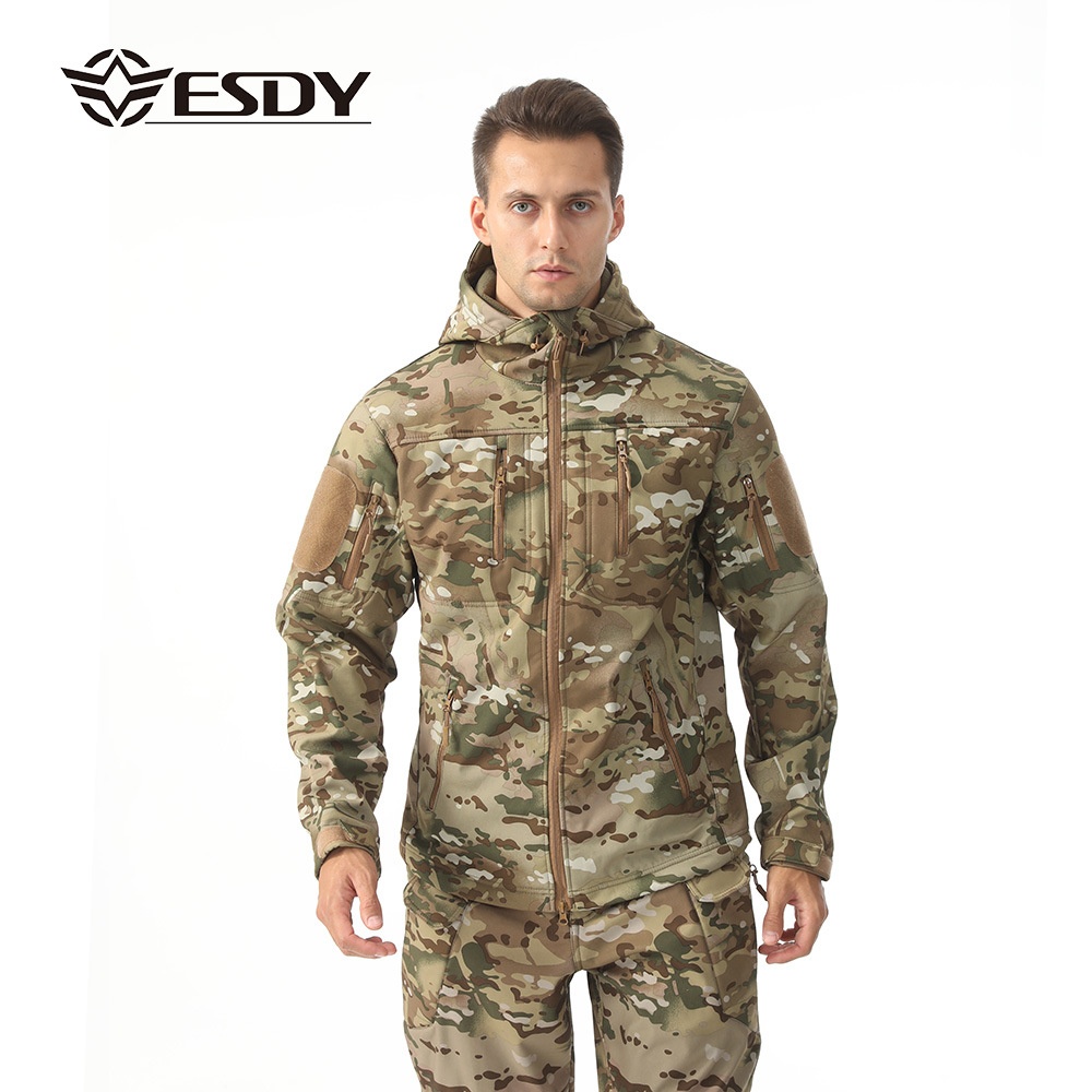 ESDY Softshell-Outdoorjacke für Jungen, Tarnmuster, Thermojacke für Herren, winddicht, ideal zum Radfahren und Wandern.