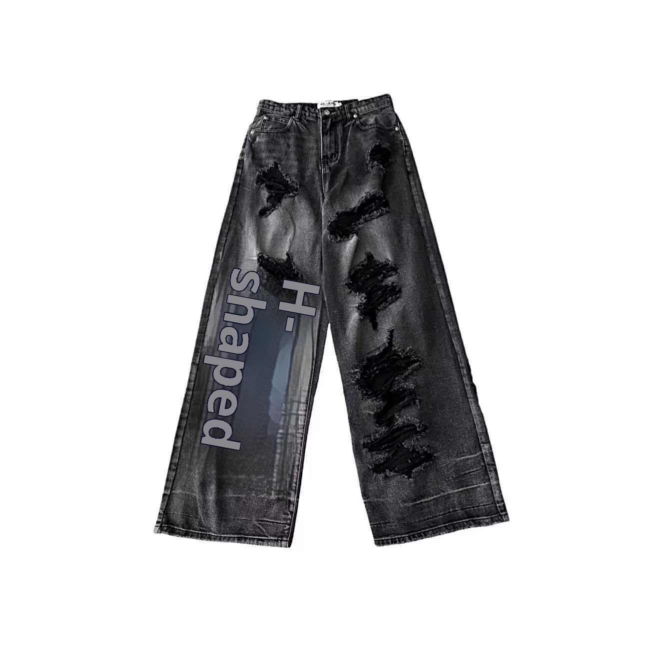 Product Source Category:In Stock,Item Number:D656,Style:High Street,Design:Straight-leg Pants,Bargain Category:Youth Fashion 18-24 Years Old,Pants Style:Straight Cut,Special craftsmanship:frayed,The length of the pants:Long Pants,Waist Shape:Mid-rise,Pants Fly:Zipper Closure,Thickness:Average,Error margin:1-3,Suitable for the season:Four Seasons,Origin:Guangdong,Is it in stock?:yes,Inventory Type:Complete order,Suitable for everyone:Youth,Year/Season of Release:2025 Summer,Fabric Name:Denim,Main fabric composition:Cotton,Content of the main fabric components:Cotton,Applicable Scenarios:Everyday,Design details:Ripped,Elasticity:Non-elastic,Pants Hem Style:Straight-leg,Craftsmanship:Washable,Color:Black and gray,Size:S,M,L,XL,XXL,XXXL,Is it exclusively for cross-border export supply?:No,Washing Process:Washable,Is there a quality inspection report?:No,Original Design Source:No,Quality Inspection Report Number:None,Suitable age group:adult,Applicable Gender:Male,Product Category:Jeans