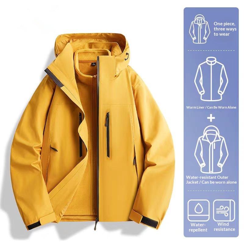 Product Source Category:In Stock,Is it in stock?:yes,Inventory Type:Complete order,Fastest shipping time:1-3 days,Product Category:Softshell Jacket,Functionality:Durable, windproof, other,Fabric:Polyester fiber,Suitable for the season:Winter, Spring, Autumn,Pattern:Solid Color,Brand:Independent,Is it for export?:No,Suitable for Sports:Universal, Hiking, Camping, Fishing, Outdoor Climbing, Travel, Outing, Hunting, Cycling, Self-driving, Other,Applicable Gender:Unisex / Suitable for both men and women,Error margin:1-3cm.,Style number:TF6008S,Origin:Fujian,Design:Cardigan,Lining Material:Polyester,Quality level:Qualified product,Suitable age group:Adult,Is it hooded or not?:Hooded,Combination Form:Two-piece set,Is it detachable?:Removable,With or without liner:With Inner Liner,Fabric Composition:Polyester,Faux fur collar material:None,Does it have a fur collar?:No Fur Collar,Waterproof Rating:8000mm,Item Number:TF6008S,Applicable Scenarios:Winter Sports, Extreme Challenges, Hiking and Camping, Venue Amusement Equipment, Fishing, Table Tennis and Badminton, Others,Color:TF6008Single FlushUnisexIvory white, TF6008Single FlushUnisexGlacier Orchid, TF6008Single FlushUnisexCrystal Uranium Yellow, TF6008Single FlushUnisexBlack, TF6008Single FlushWomen's StylePink, TF6008Fleece 3-in-1UnisexIvory white, TF6008Fleece 3-in-1UnisexGlacier Orchid, TF6008Fleece 3-in-1UnisexCrystal Uranium Yellow, TF6008Fleece 3-in-1UnisexBlack, TF6008Fleece 3-in-1Women's StylePink, TF6008Three-in-One Down JacketUnisexIvory white, TF6008Three-in-One Down JacketUnisexGlacier Orchid, TF6008Three-in-One Down JacketUnisexCrystal Uranium Yellow, TF6008Three-in-One Down JacketUnisexBlack, TF6008Three-in-One Down JacketWomen's StylePink,Size:S,M,L,XL, 2XL, 3XL,Is it exclusively for cross-border export supply?:No,Down types:New National Standard 90% White Duck Down,Outdoor Fabric:T800,What type of liner is it?:Down filling liner,Material:Polyester,Waterproof Breathability Index:5001mm inclusive - 10000mm inclusive,Applicable objects:Couple,Clothing Craftsmanship:Fully Sealed Edges,Appropriate Season:Winter,Clothing Designs:Regular,Length of clothing:Regular,Patent Type:None,Foreign Trade Export Certification:None,Quality Inspection Report Number:Contact customer service,National Standard:GB32614