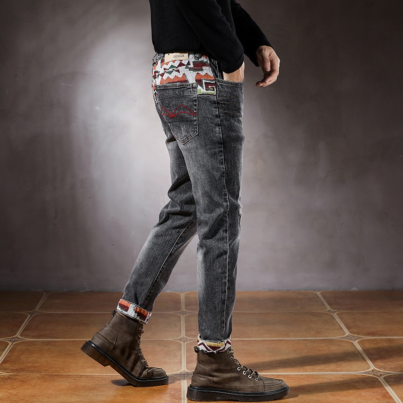Jungen-Jeans mit Stickerei, Rissen, europäischem und amerikanischem Stil, neue Slim-Fit-Jeans, lange Freizeithose, coole Herrenhose, Einteiler