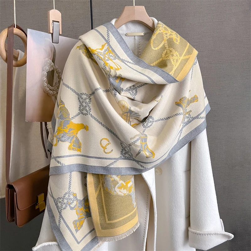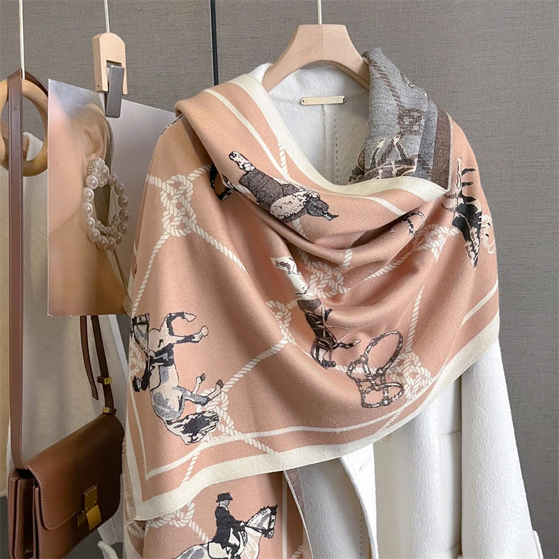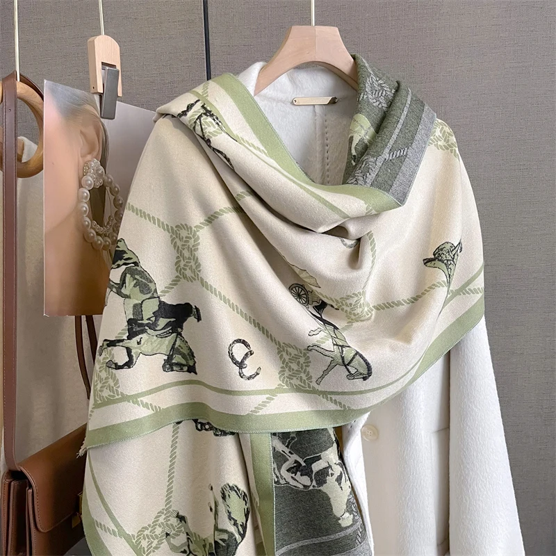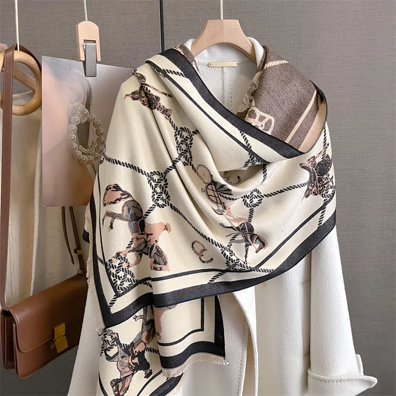 Marke Pferd Druck Kaschmir Warme Schal Winter Schal Wraps Frauen 2023 Pashmina Dicke Decke Reise Casal Poncho Bufanda