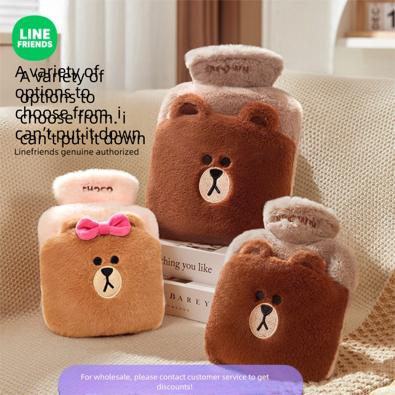 Brown Bear Water-Filled Hot Water Bottle Thickened Explosion-Proof Heat Pack Hand Warmer Bed Warmer Quilt Warmer Imitation Rabbit Fur Water-Filled Hand Warmer